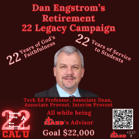 While Dan cared deeply about helping students advance academically his passion was for students to grow in their faith in God. He's invested much of his time and resources into the campus ministry of STAND.